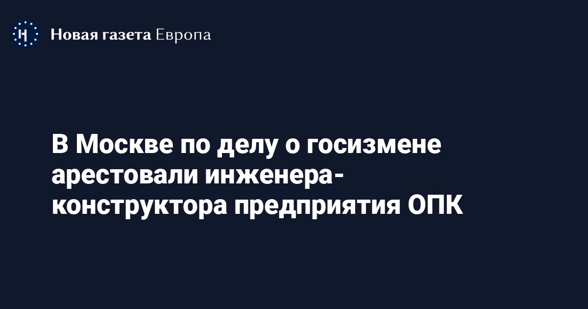 Лефортовский суд Москвы арестовал по делу о госизмене (ст. 275 УК) инженера-конструктора предприятия оборонно-промышленного комплекса. Об этом сообщает ТАСС со ссылкой на правоохранительные органы.