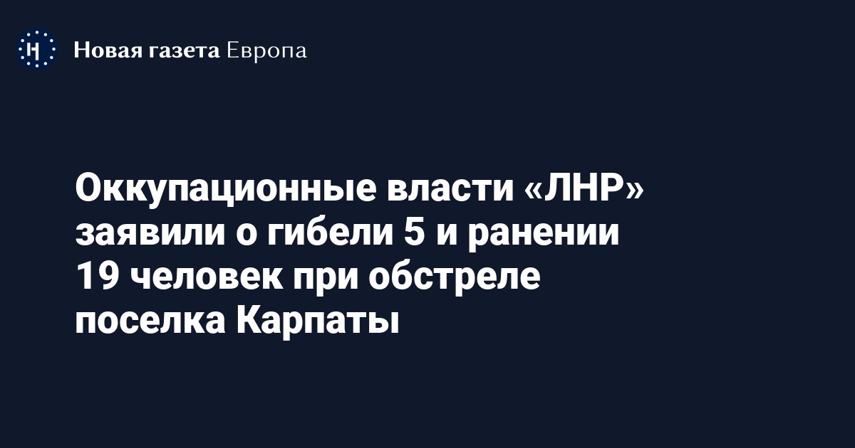 Оккупационные власти «ЛНР» заявили о гибели 5 и ранении 19 человек при обстреле поселка Карпаты