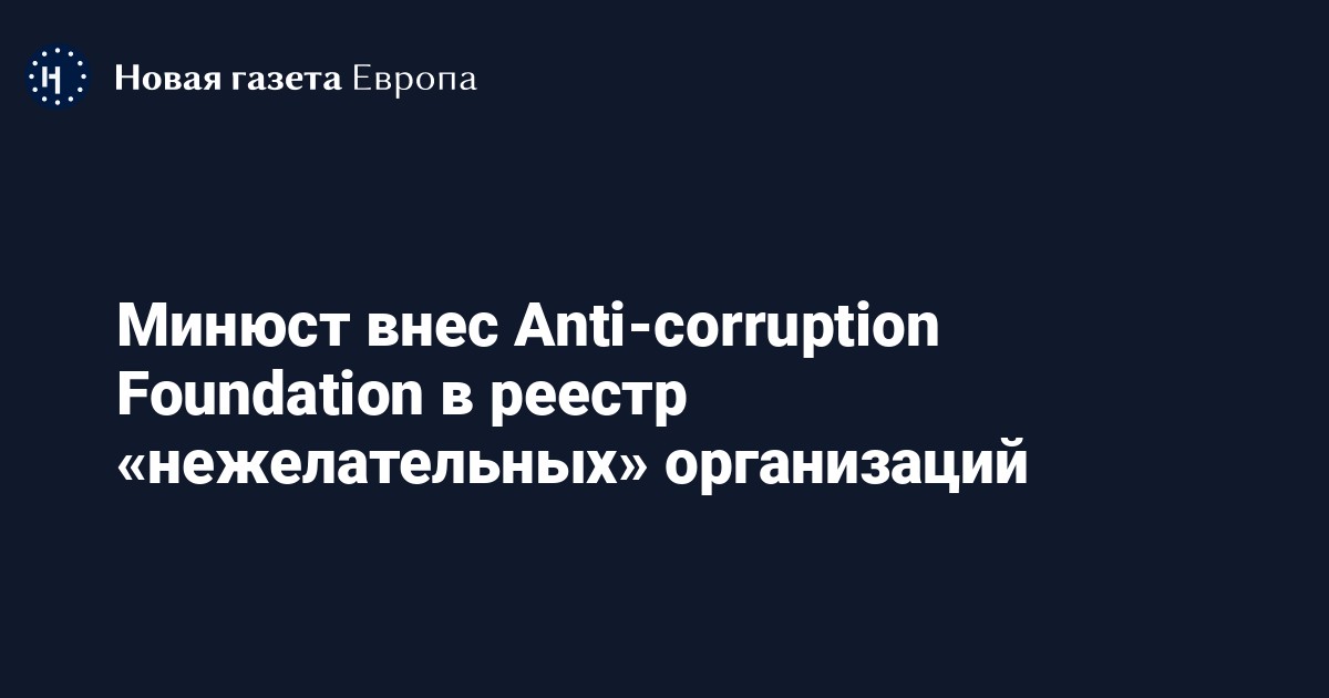 Anti-corruption Foundation (международная версия Фонда борьбы с коррупцией) внесли в реестр «нежелательных» организаций, сообщает «Медуза».