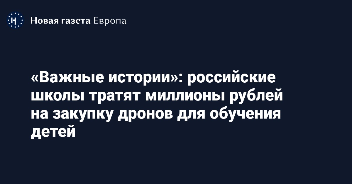 Журналисты обнаружили данные о закупке дронов как минимум для пяти учебных заведений в разных регионах. «Эти же школы ранее отмечались общей милитаризацией учебного процесса», — отмечают «Важные истории».
