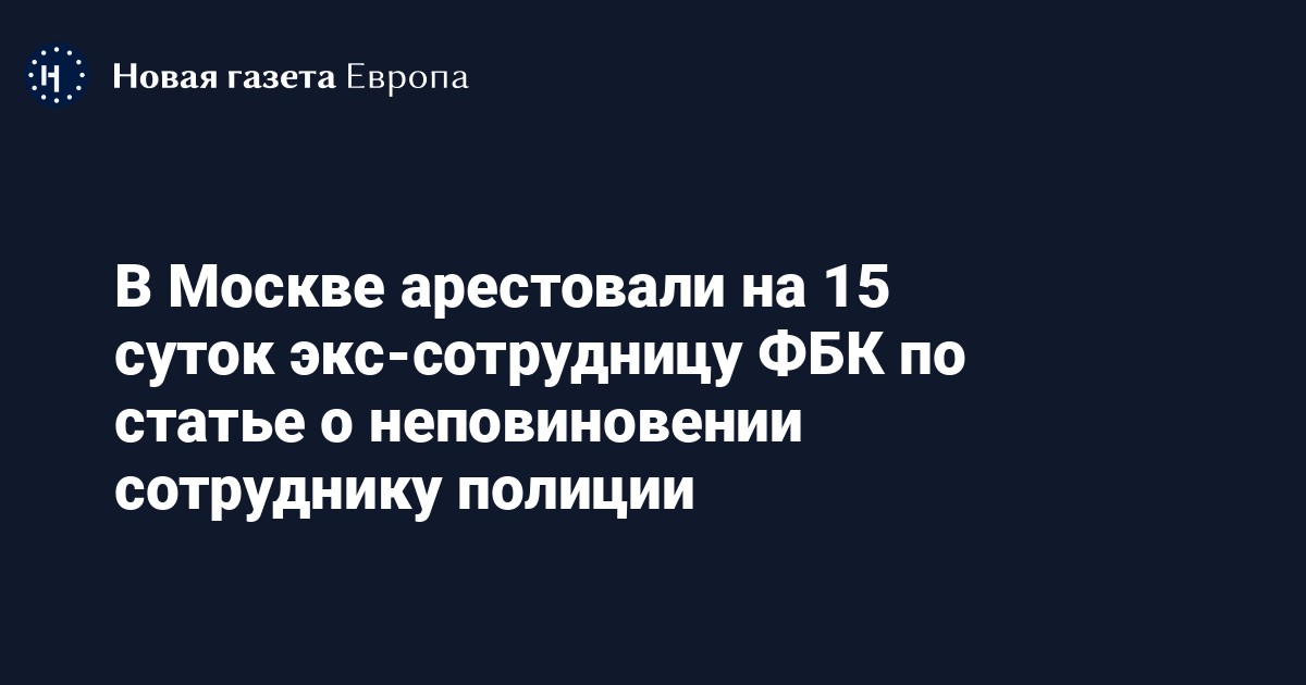 В Москве полицейские задержали бывшую сотрудницу Фонда борьбы с коррупцией (ФБК) Анну Богомолову по административной статье о неповиновении сотрудникам полиции. Об этом сообщает «ОВД-Инфо» со ссылкой на саму Богомолову.