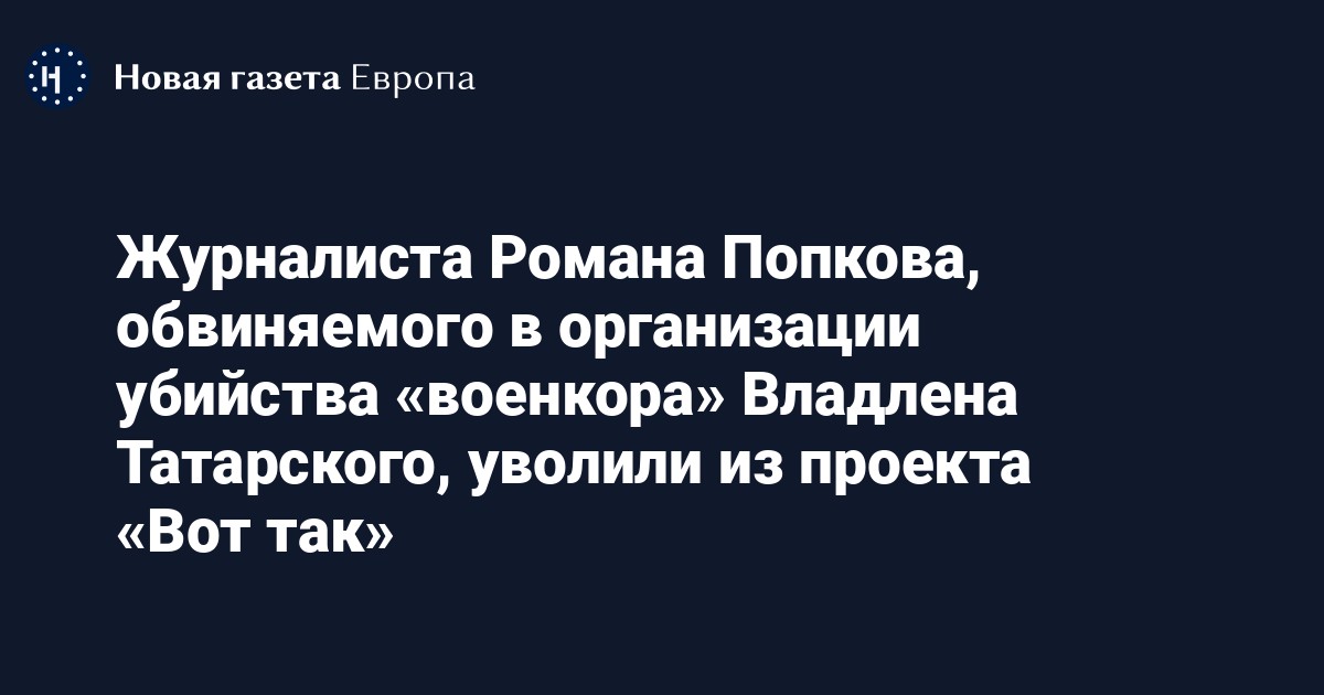 Журналиста Романа Попкова, обвиняемого в организации убийства «военкора» Владлена Татарского, уволили из проекта «Вот так»