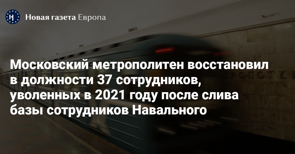 Московский метрополитен вернул на работу 37 сотрудников, которые были уволены в мае 2021 года из-за поддержки оппозиционного политика Алексея Навального. Об этом сообщает «Агентство» со ссылкой на председателя профсоюза работников метро Николая Гостева.