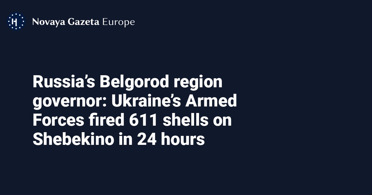 Ukraine’s army launched 611 shells on the border town of Shebekino, Belgorod region of Russia, in one day, the local governor Vyacheslav Gladkov says.