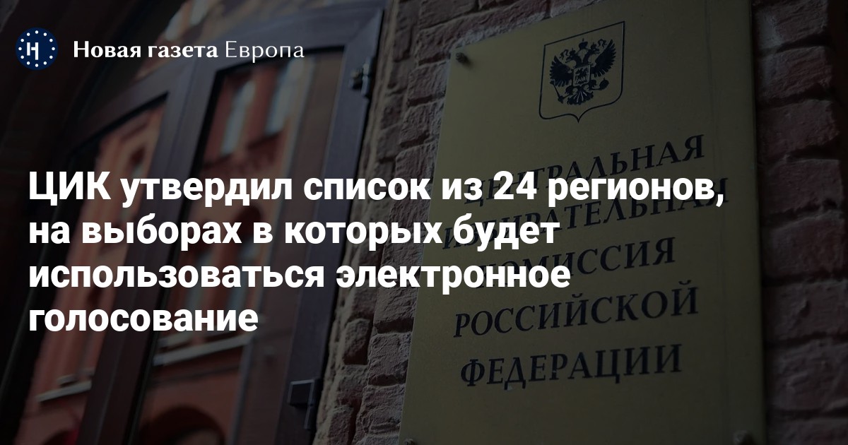 «По итогам рассмотрения заявок регионов — а их было более 30 — принято решение одобрить проведение дистанционного электронного голосования в 24 субъектах. Из них 18 — это регионы-новички, которые ранее ДЭГ никогда не применяли», — заявила глава ЦИК Элла Панфилова.
