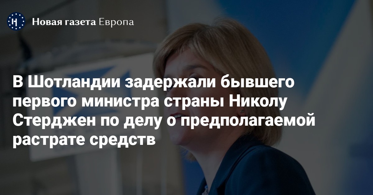В Шотландии в качестве подозреваемой задержали бывшего первого министра страны и экс-главу Шотландской национальной партии Николу Стерджен по делу о растрате 600 тысяч фунтов стерлингов, собранных на кампанию партии за независимость страны. Об этом сообщает Sky News.