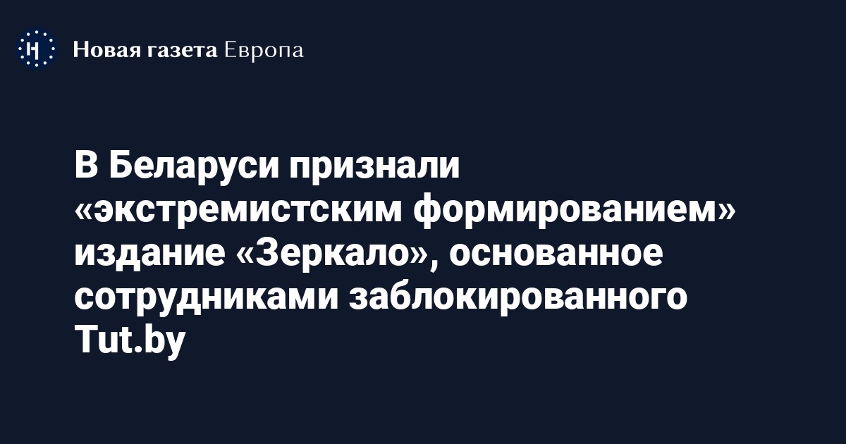 «Зеркало» пишет со ссылкой на телеграм-канал, связанный с Главным управлением по борьбе с организованной преступностью и коррупцией Беларуси, что издание признано «экстремистским формированием» за «публичные призывы к санкциям, дискредитацию и оскорбление должностных лиц, организацию деятельности по подготовке к совершению посягательств на суверенитет и общественную безопасность Республики Беларусь».