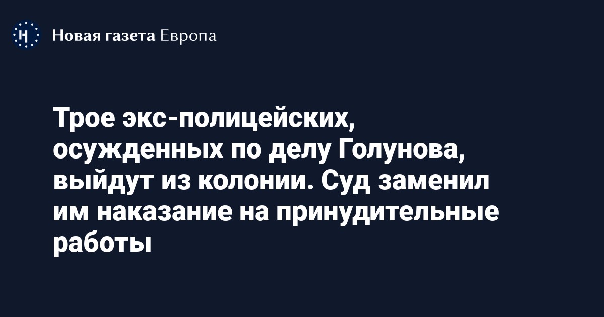 Трое экс-полицейских, осужденных по делу журналиста Ивана Голунова, выйдут из колонии — суд заменил им наказание с лишения свободы на принудительные работы, сообщил ТАСС адвокат Сергей Бадамшин.