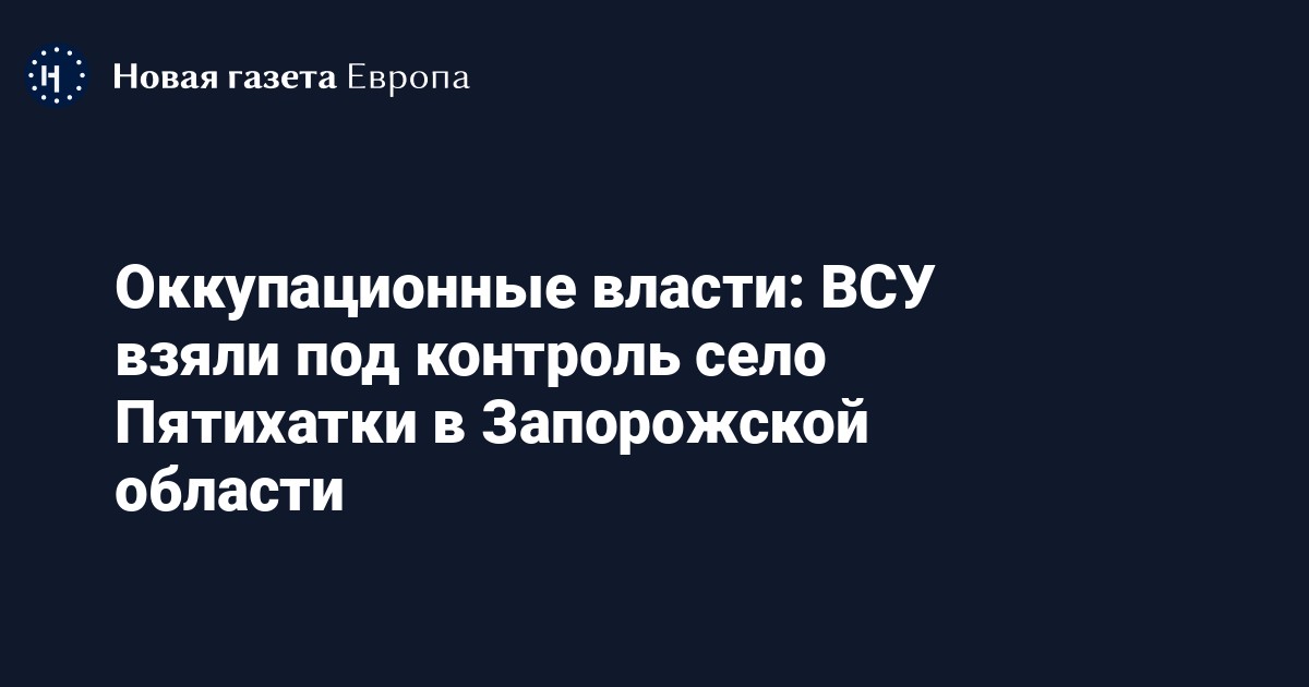 Украинские войска взяли под контроль село Пятихатки в Запорожской области. Об этом заявил представитель российской оккупационной администрации региона Владимир Рогов.