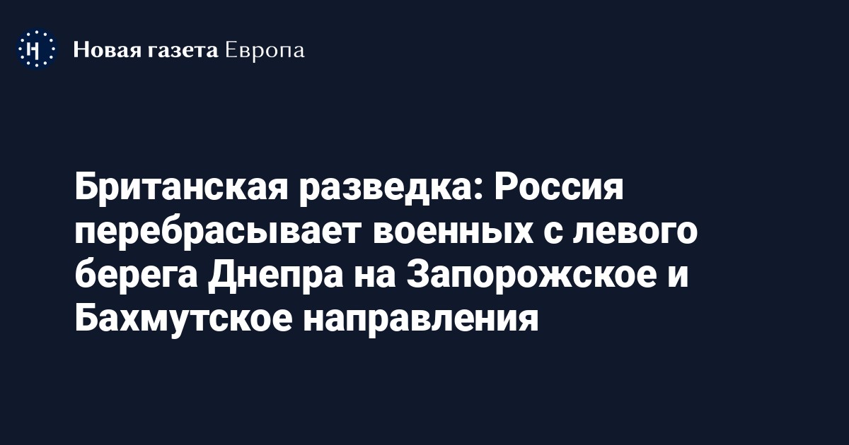 Россия начала переброску сил с левого берега Днепра для усиления Запорожского и Бахмутского секторов. Об этом пишет Министерство обороны Великобритании.