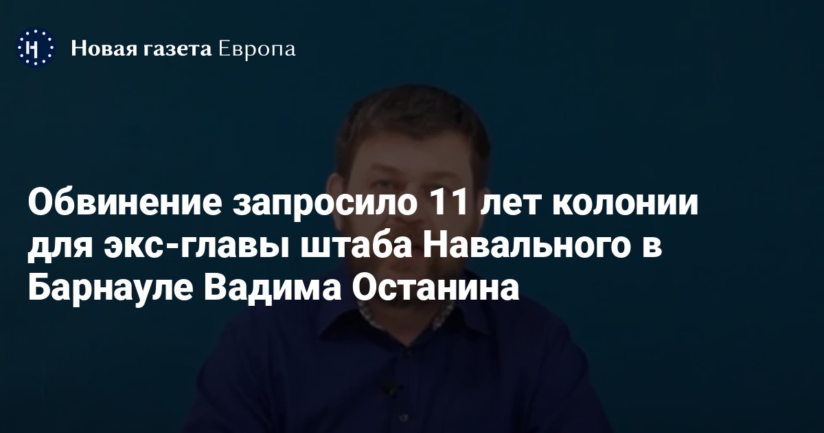 Гособвинение во время заседания в Центральном районном суде Барнаула запросило 11 лет колонии для экс-главы штаба Алексея Навального Вадима Останина. Об этом сообщила «Команда Навального».
