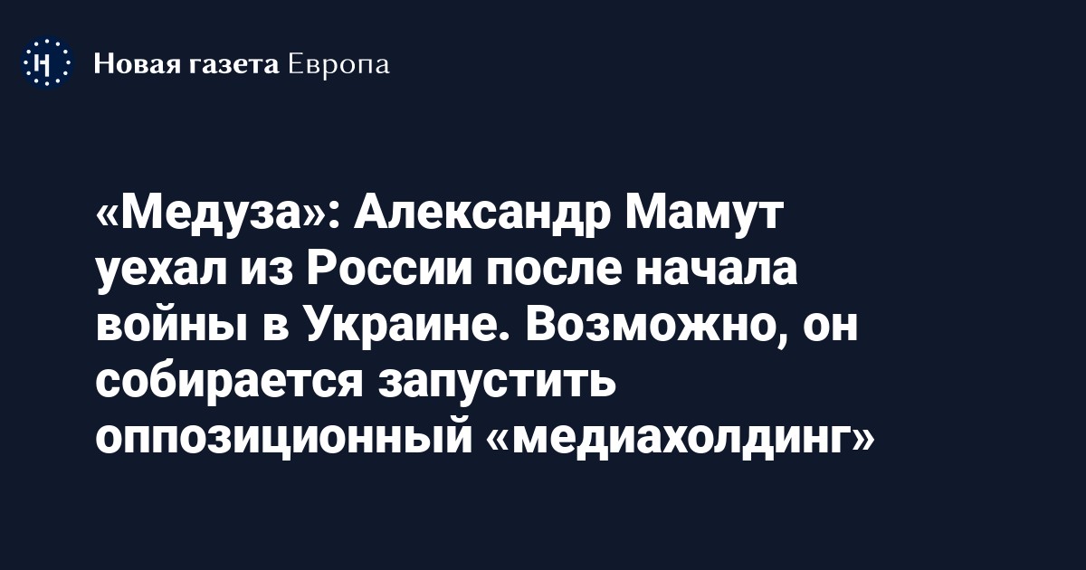Бывший совладелец «Рамблера» Александр Мамут уехал из России после начала полномасштабного вторжения в Украину. Об этом пишет «Медуза» со ссылкой на трех человек из окружения Мамута, а также одного из участников российского списка «Форбс».