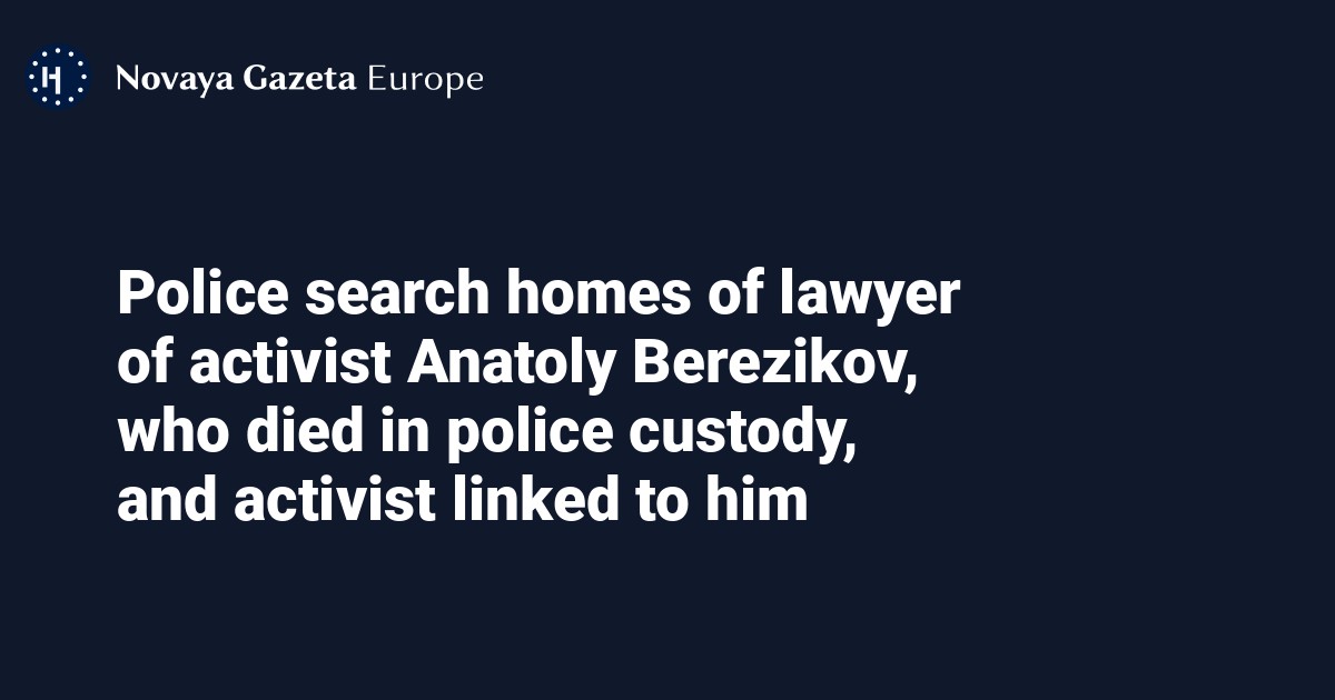 Law enforcers have searched the homes of Irina Gak, the lawyer of activist Anatoly Berezikov who died in a detention centre, and human rights activist Tatyana Sporysheva, OVD-Info and Dept. One report.