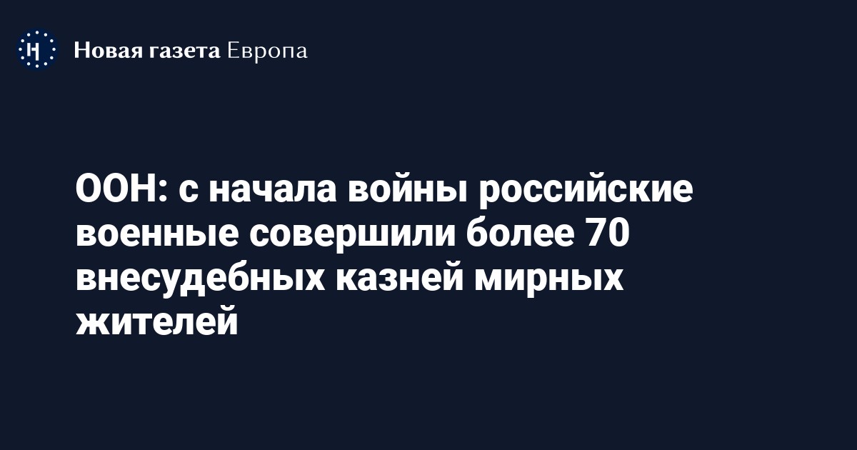 С февраля 2022 года российские военные совершили на оккупированных территориях более 70 казней мирных жителей, сообщается в новом докладе ООН.