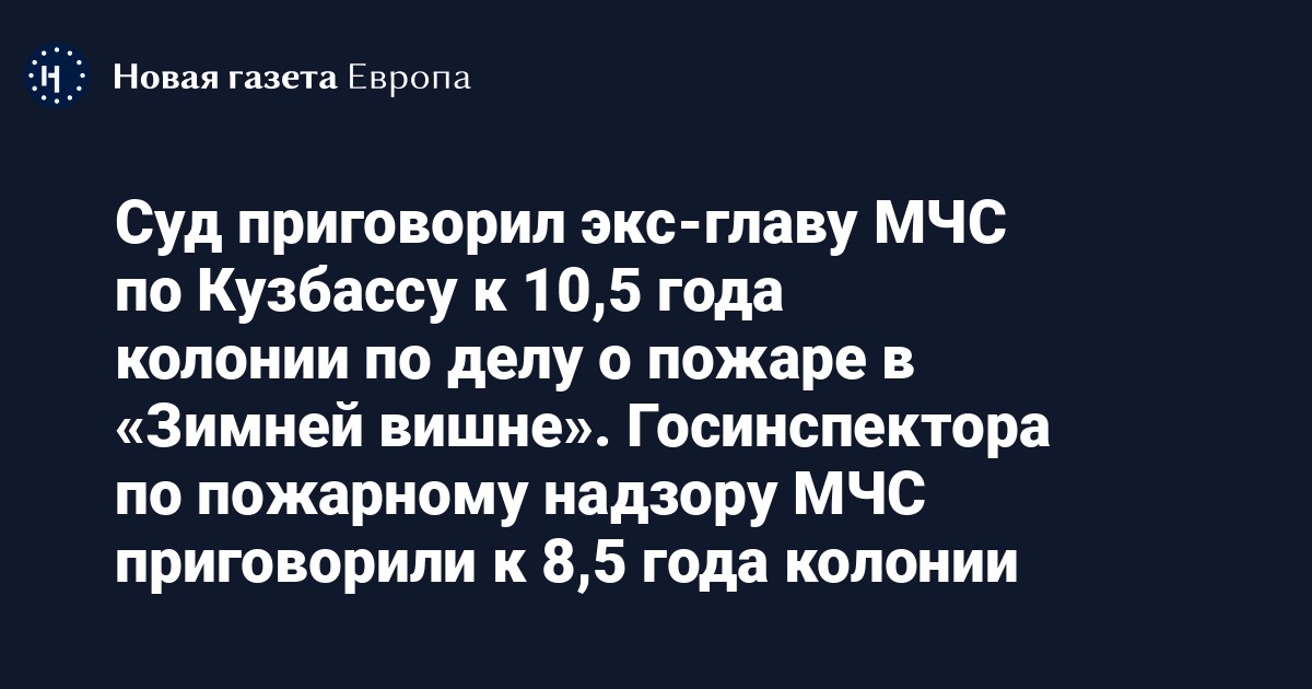 Также суд приговорил бывшего главного госинспектора по пожарному надзору МЧС в Кемерово Григория Терентьева к 8,5 года лишения свободы. Его признали виновным в халатности, повлекшей смерти двух и более лиц, и мошенничестве (ч. 3 ст. 159).