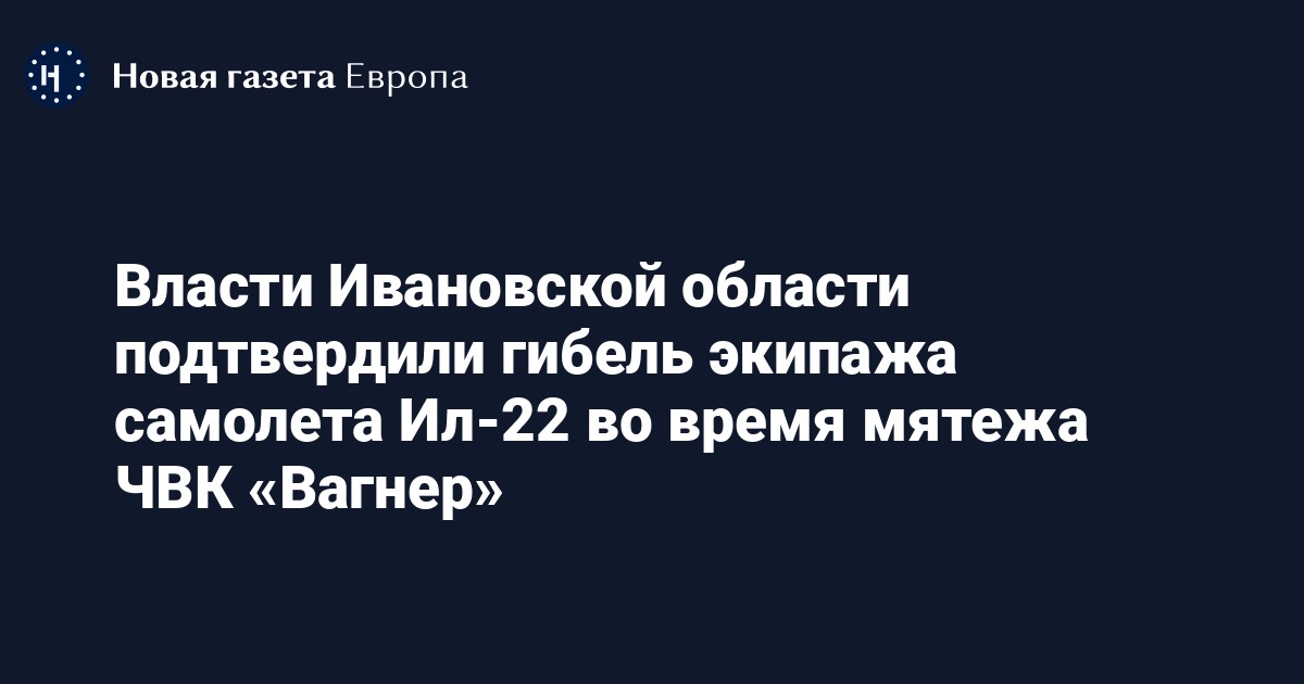 Власти Ивановской области сообщили, что 24 июня во время мятежа бойцов ЧВК «Вагнер» погибли члены экипажа самолета Ил-22, базировавшегося в регионе. Об этом говорится на сайте правительства региона.
