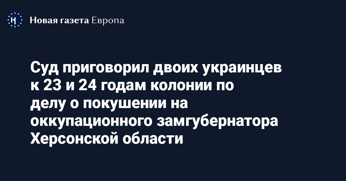 Суд приговорил двоих украинцев к 23 и 24 годам колонии по делу о покушении на оккупационного замгубернатора Херсонской области