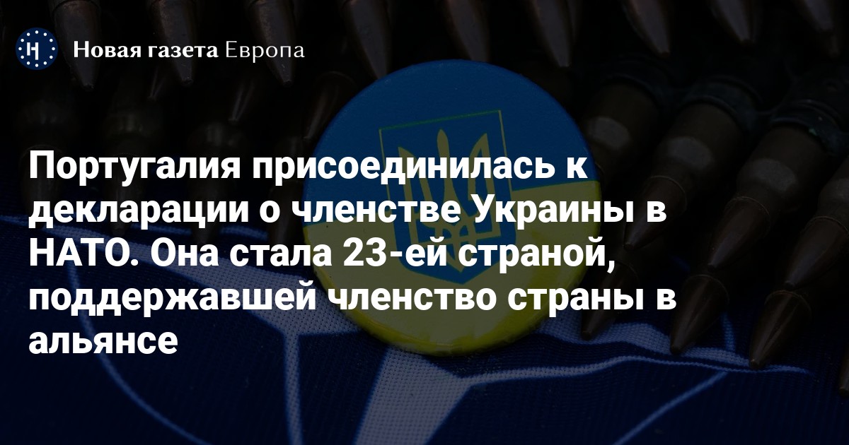 Португалия стала 23-ей страной, поддержавшей стремление Украины к членству в НАТО. Накануне подобную декларацию подписала Болгария, которую Владимир Зеленский посетил на этой неделе.