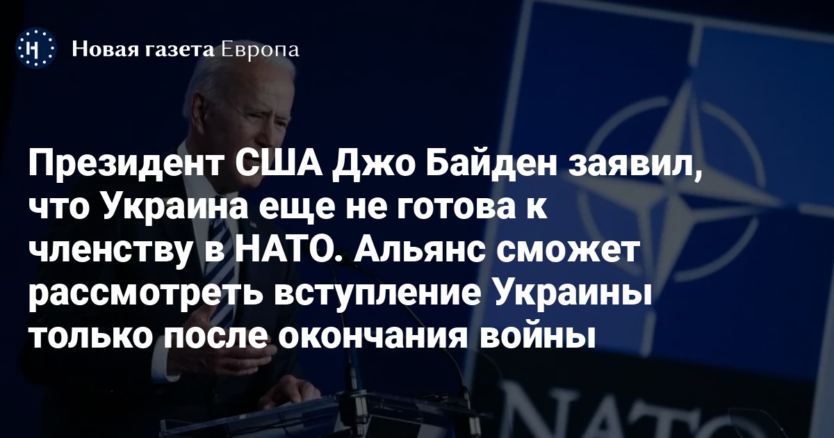 Президент США Джо Байден заявил, что Украина еще не готова к членству в НАТО. По его словам, блок сможет рассмотреть принятие Украины только после окончания войны. Об этом сообщает CNN.