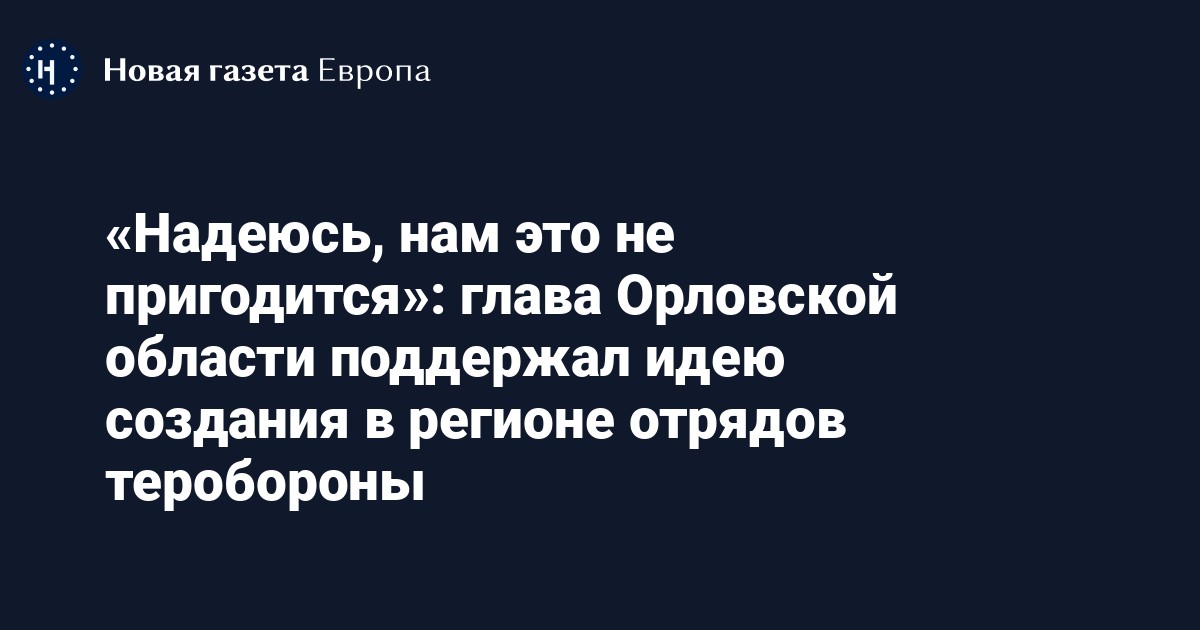 Губернатор Орловской области Андрей Клычков поддержал идею создания в регионе отрядов территориальной обороны. Об этом говорится на сайте правительства региона.