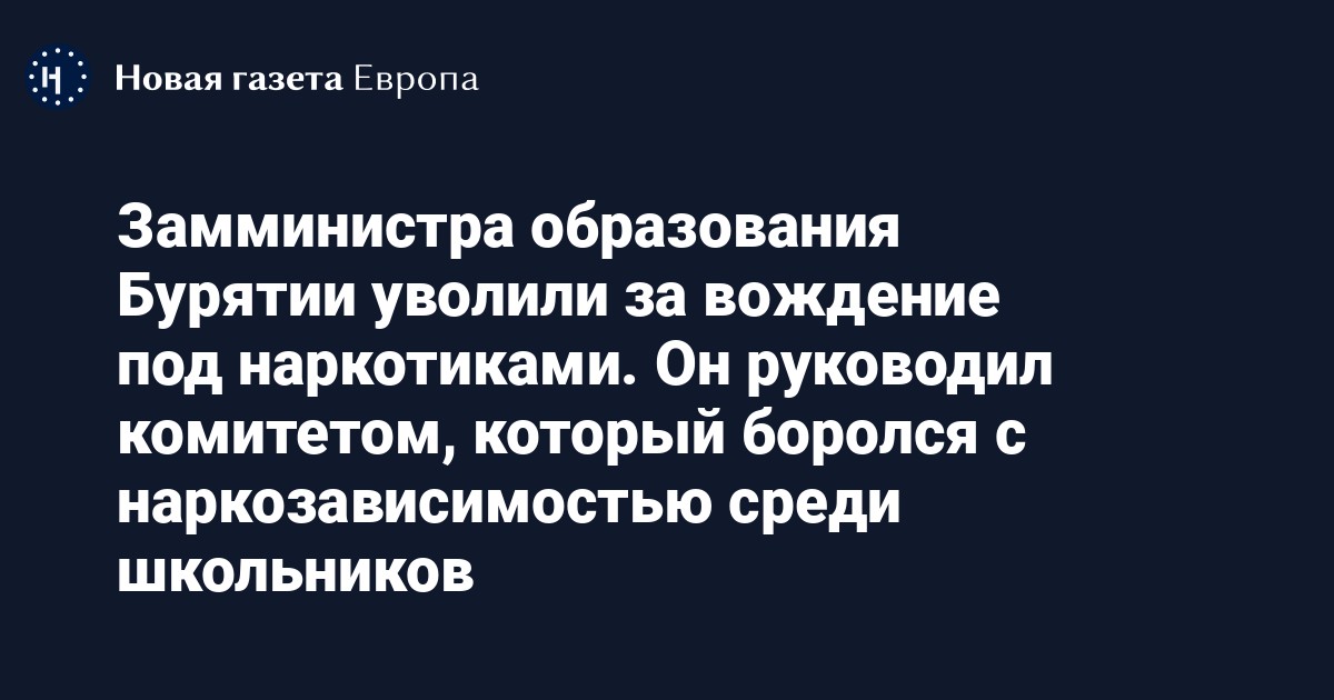 Замминистра образования Бурятии уволили за вождение под наркотиками