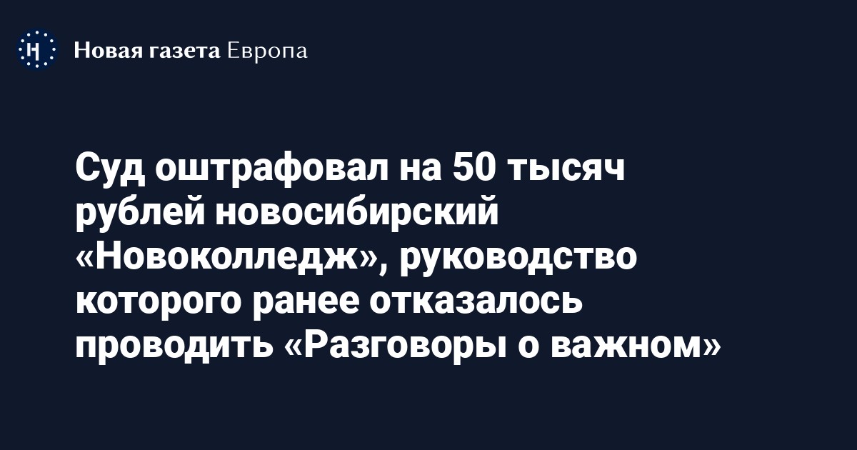 Суд оштрафовал на 50 тысяч рублей новосибирский «Новоколледж», руководство которого ранее отказалось проводить «Разговоры о важном»