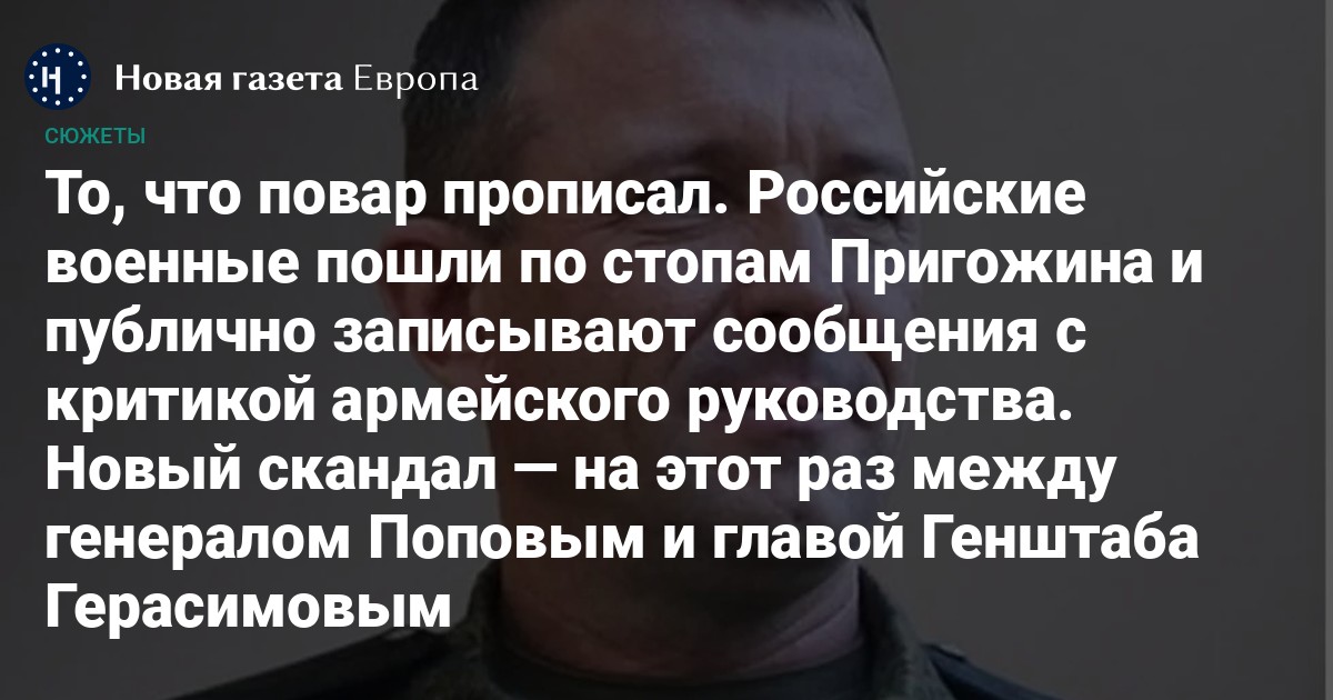 «Командующий 58-й армией генерал-майор Иван Попов был отстранен от должности по результатам доклада [начальнику Генштаба Валерию] Герасимову, — написал канал ВЧК-ОГПУ. — В своем докладе Попов поднял вопрос о необходимости ротации подразделений, которые длительный период времени находятся на линии боестолкновения и понесли значительные потери. Герасимов обвинил Попова в паникерстве и шантаже высшего руководства. После заявления Попова о готовности лично доложить о проблеме Путину Герасимов отстранил его от должности и отправил на передовые позиции фронта».