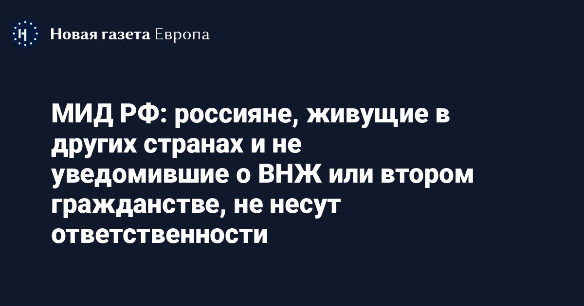 МИД РФ пояснил, что россияне, которые находятся в других странах, не обязаны уведомлять посольства о наличии ВНЖ или второго гражданства до приезда в Россию.