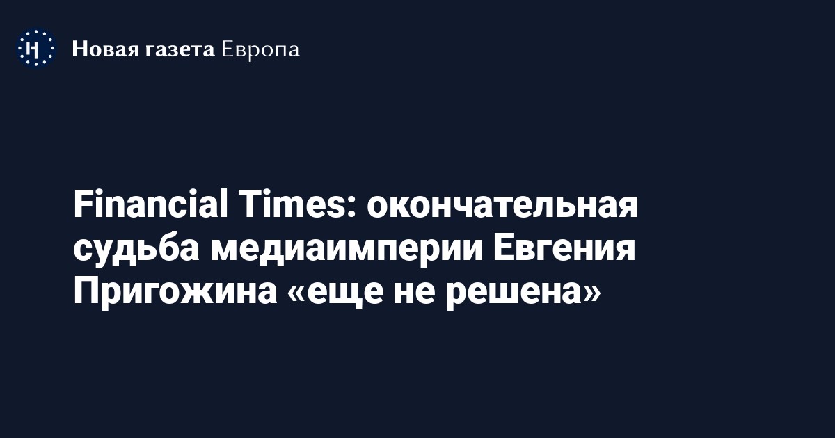 Окончательная судьба медиахолдинга «Патриот» бизнесмена Евгения Пригожина «еще не решена» — она может возобновить свою работу, сообщает Financial Times на источники в медиагруппе.