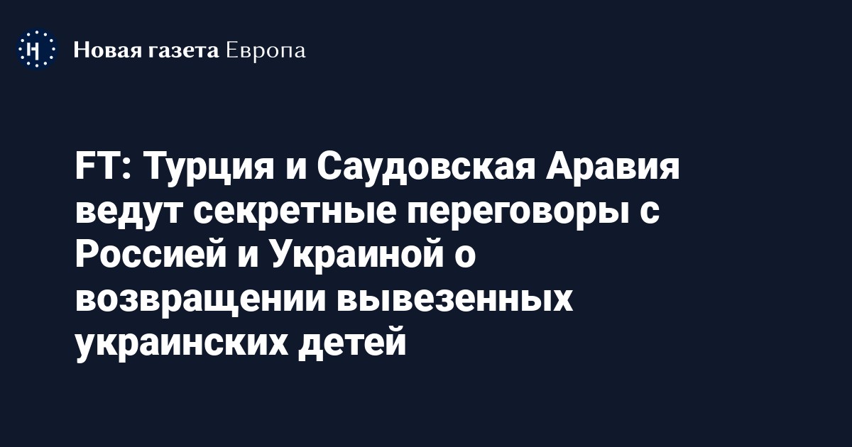 Саудовская Аравия и Турция пытаются договориться о репатриации украинских детей, вывезенных в Россию и содержащихся в детских домах или усыновленных российскими семьями. Об этом пишет Financial Times со ссылкой на четырех человек, знакомых с ходом переговоров.