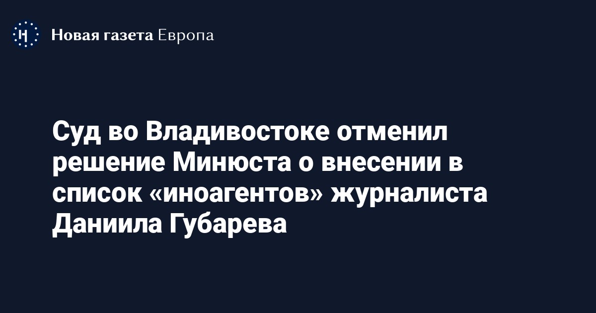 Советский районный суд Владивостока отменил решение Минюста РФ о внесении в реестр «иностранных агентов» журналиста Даниила Губарева. Об этом сообщает «Медиазона» со ссылкой на адвоката Сергея Валиулина.