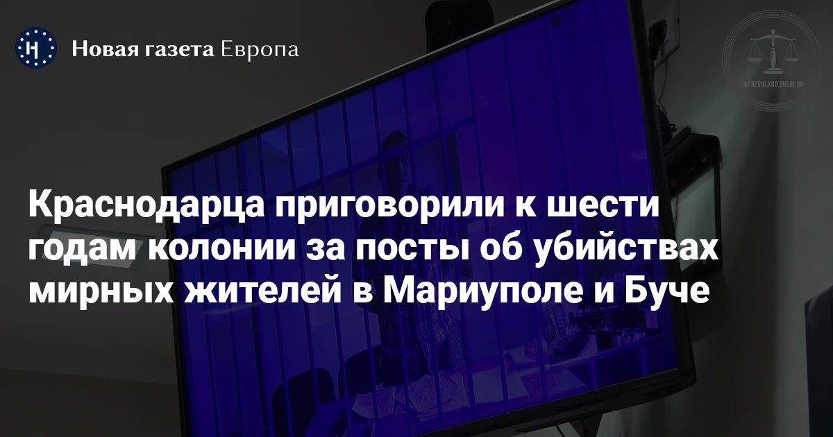 Краснодарский краевой суд утвердил приговор 37-летнему местному жителю Александру Сомрякову, которого в апреле Первомайский районный суд приговорил к шести годам колонии из-за постов об убийствах мирных жителей в Украине. Об этом сообщает пресс-служба краевого суда.
