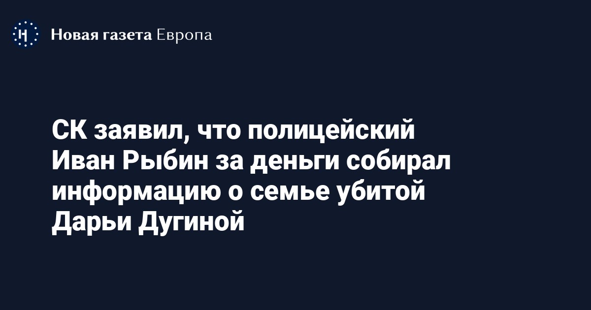 Следственный комитет установил, что сотрудник полиции Иван Рыбин за деньги собирал информацию о семье убитой Дарье Дугиной. Об этом в интервью РИА Новости рассказал председатель ведомства Александр Бастрыкин.