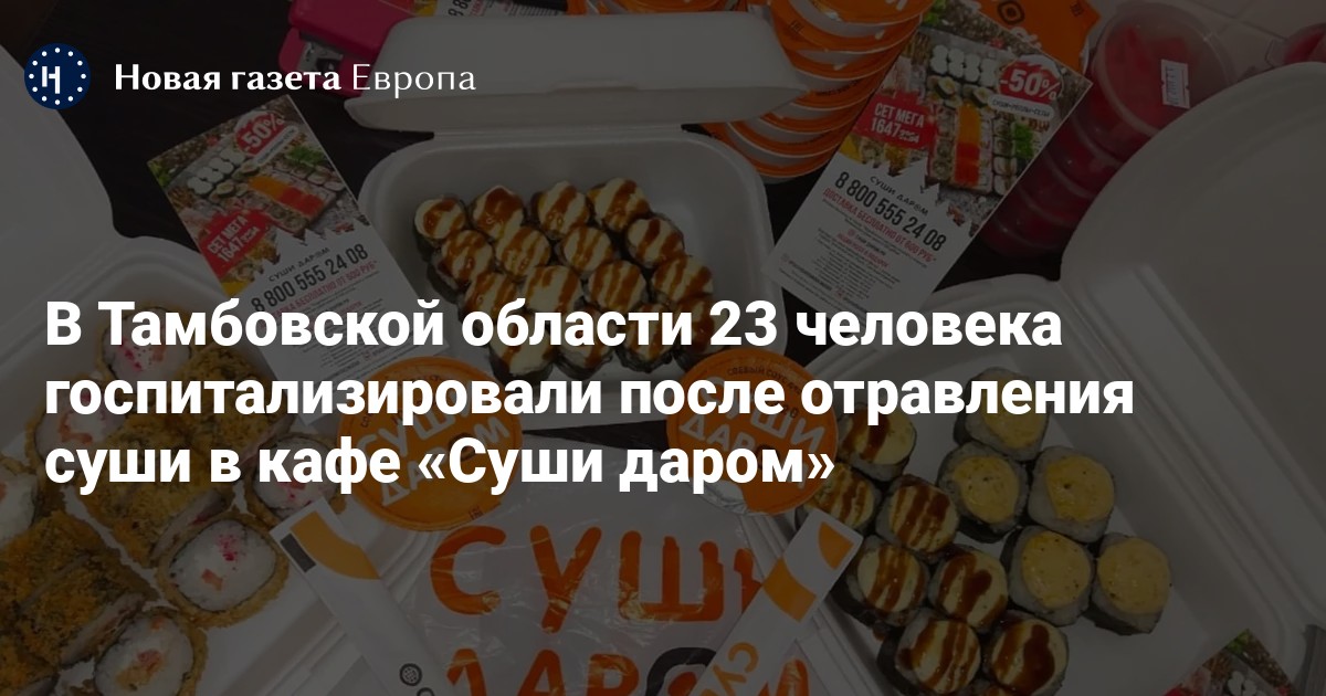 В Тамбовской области 23 человека госпитализировали после того, как они заказали еду в суше-баре, который работает под брендом «Суши даром». Об этом пишет ТАСС со ссылкой на управление Роспотребнадзора по региону.