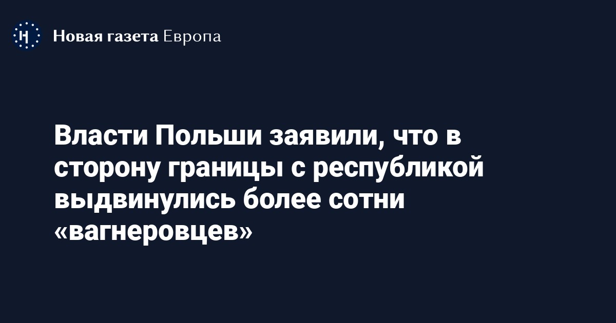 Премьер-министр Польши Матеуш Моравецкий заявил, что более сотни наемников ЧВК «Вагнер», дислоцированных в Беларуси, выдвинулись в сторону границы с республикой. Об этом сообщает издание Wyborcza.