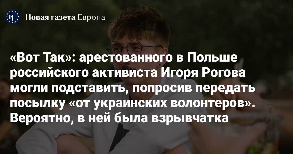 Бывшего активиста «Открытой России» Игоря Рогова, который сейчас находится под арестом в Польше по обвинению в подготовке взрыва, могли подставить. Его попросили передать посылку «от украинских волонтеров», в которой, вероятно, была взрывчатка. Об этом рассказало «Вот Так» со ссылкой на источники.