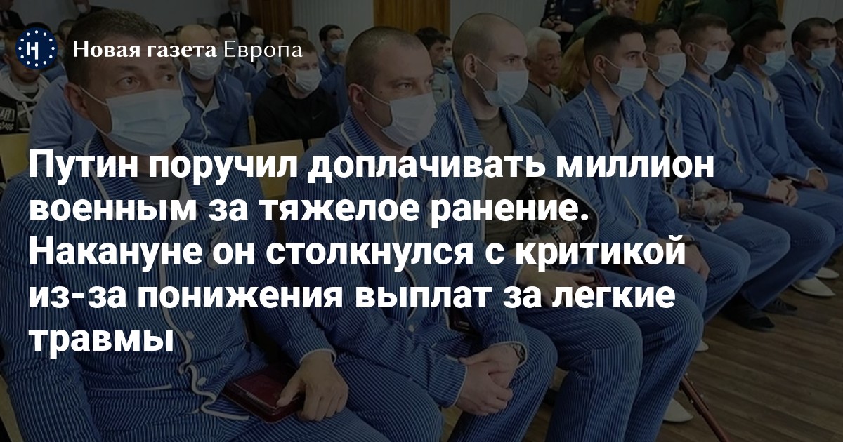 Путин поручил доплачивать миллион военным за тяжелое ранение. Накануне он столкнулся с критикой из-за понижения выплат за легкие травмы