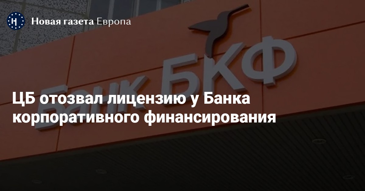 Центробанк отозвал лицензию у Банка корпоративного финансирования (БКФ). Об этом сообщается на сайте регулятора.
