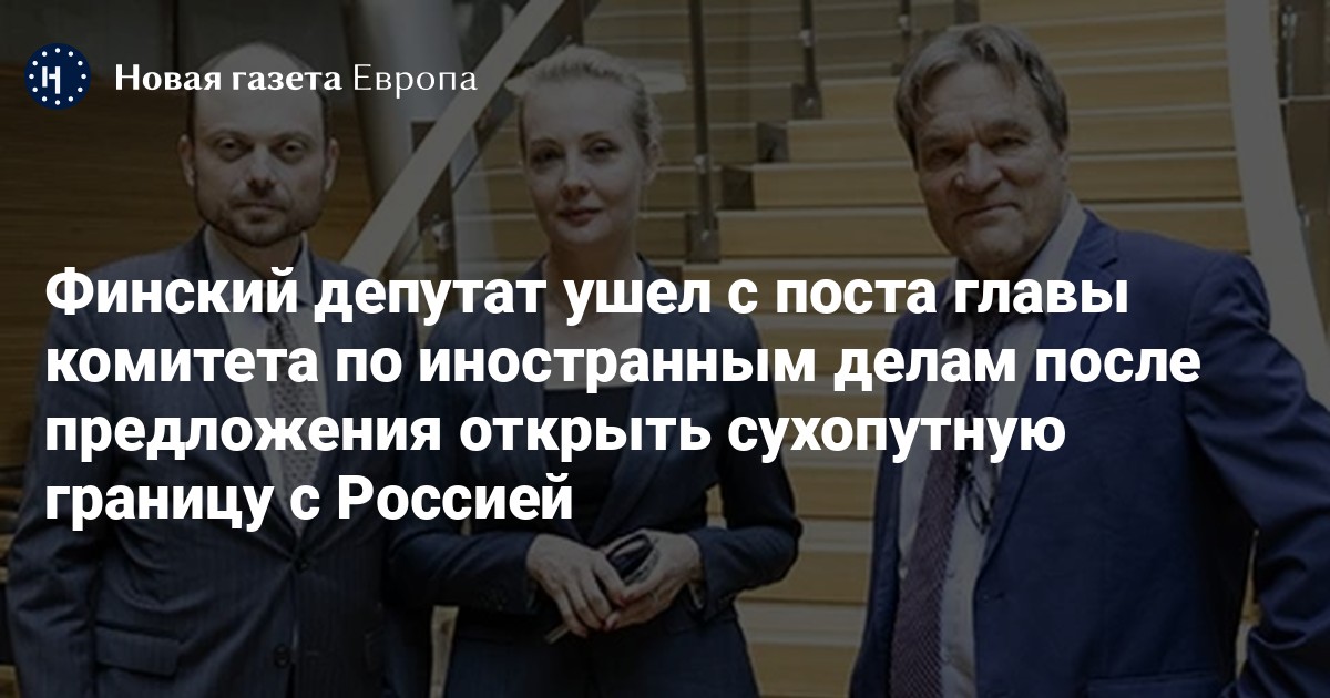 Глава комитета парламента Финляндии по иностранным делам Киммо Кильюнен покинул свой пост после предложения открыть сухопутную границу с Россией. Об этом сообщает газета Helsingin Sanomat.