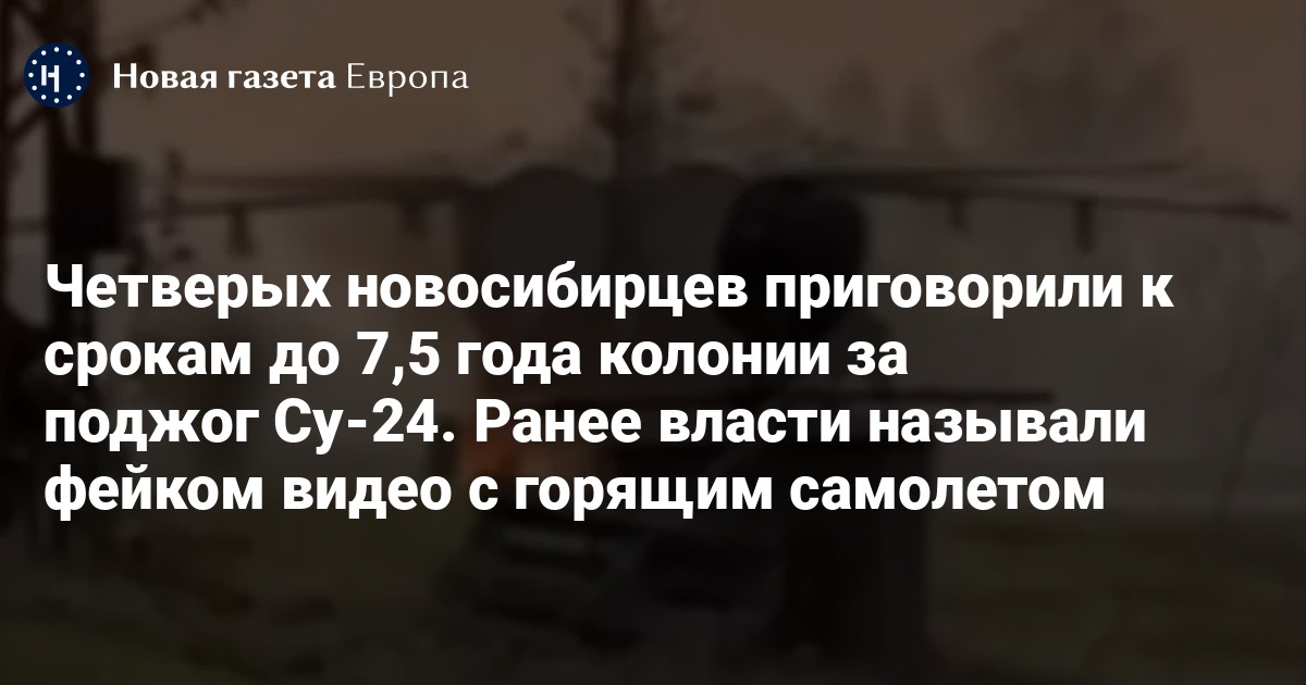 Четверых новосибирцев приговорили к срокам до 7,5 года колонии за поджог Су-24. Ранее власти называли фейком видео с горящим самолетом