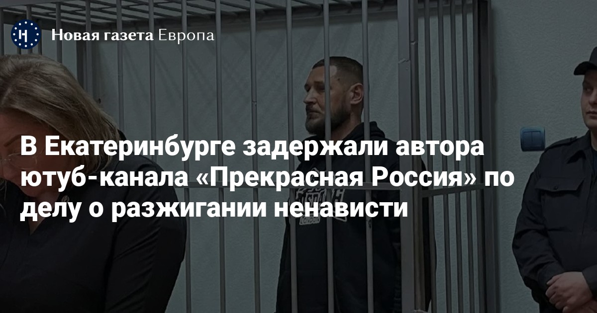 В Екатеринбурге задержали автора ютуб-канала «Прекрасная Россия» по делу о разжигании ненависти
