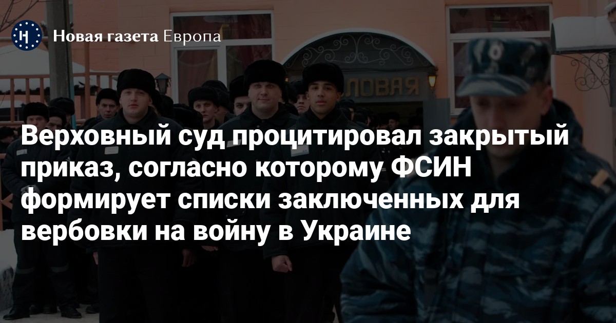 Верховный суд России процитировал закрытый приказ Минобороны, Минюста и МВД, из которого следует, что сотрудники ФСИН составляют списки заключенных, подходящих для вербовки на войну в Украине. На документ суда обратила внимание «Команда против пыток».