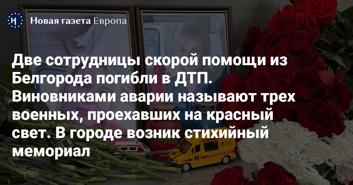 Жители города создали стихийный мемориал погибшим сотрудницам скорой помощи. Люди несут портреты, цветы и игрушечные машинки скорой.