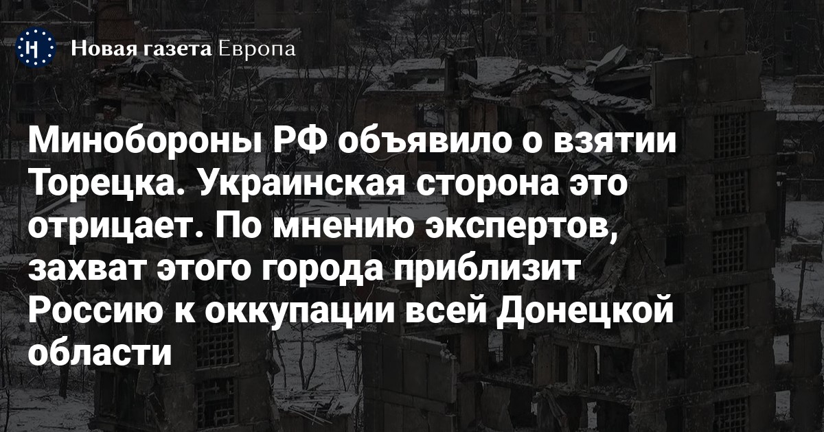 В разговоре с «Новой-Европа» военный эксперт, пожелавший остаться анонимным, заявил, что если Торецк и не перешел полностью под контроль ВС РФ, то в ближайшее время он будет захвачен. Он отметил, что дальше российская армия пойдет на Константиновку.