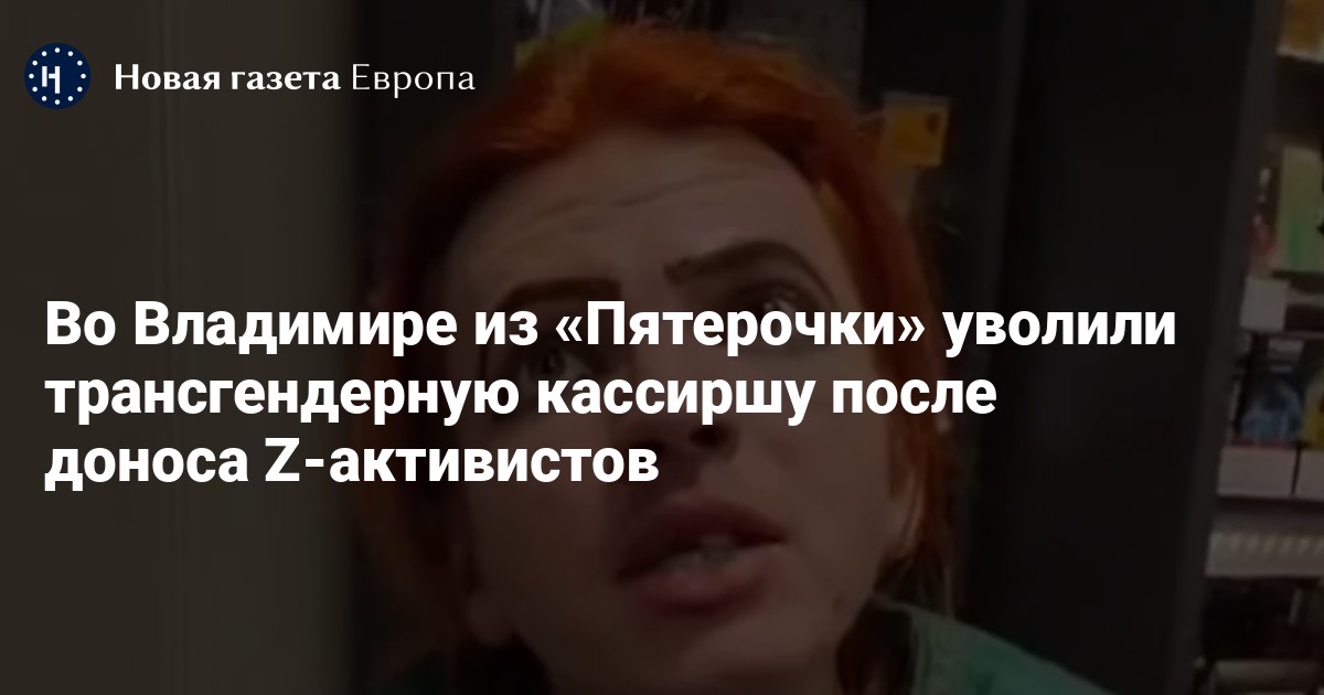 Во Владимире из магазина «Пятерочка» уволили трансгендерную кассиршу после доноса активистов Z-движения «Ветераны России». Об этом сообщил местный журналист Александр Степанов, внимание на его публикацию обратил «Довод». Эту информацию подтвердили изданию в региональном управлении МВД.
