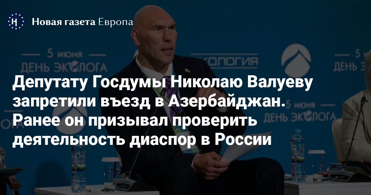 Власти Азербайджана объявили депутата Госдумы Николая Валуева персоной нон-грата и запретили ему въезд в страну. Об этом сообщил представитель МИД республики Айхан Гаджизаде.