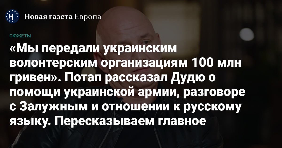 Юрий Дудь выпустил трехчасовое интервью с 43-летним украинским продюсером и музыкантом Потапом (Алексеем Потапенко). Создатель группы «Время и Стекло» и участник дуэта «Потап и Настя» ответил на критику украинцев, объяснил, почему беспрепятственно выезжает из Украины, и рассказал, каким видит справедливое будущее.