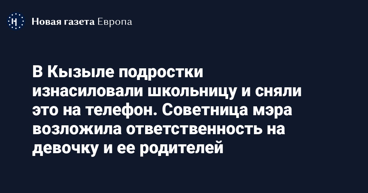 В Кызыле подростки изнасиловали школьницу. Советница мэра Кызыла Азиана Тембрель возложила ответственность за произошедшее на саму девочку. Внимание на это обратил тувинский проект «Чавага медиа».