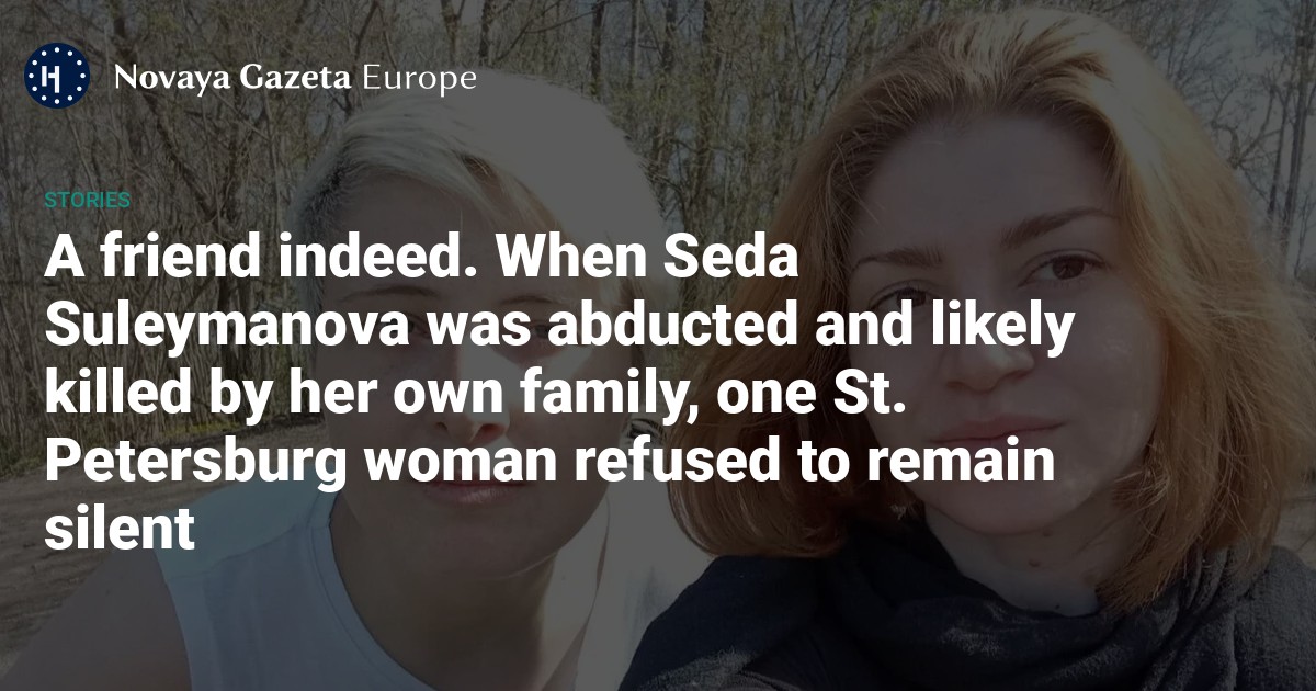 A year and a half after police officers abducted Seda Suleymanova from her apartment in St. Petersburg and forcibly returned her to her family in Chechnya where she is believed to have been murdered in a so-called “honour killing”, her friend Lena Patyaeva remains determined to raise awareness of her case and to get some answers.