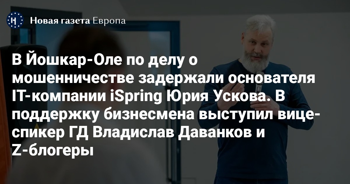 В Йошкар-Оле задержали основателя IT-компании iSpring Юрия Ускова. Ему вменяют статью о мошенничестве в крупном размере (ч. 4 ст. 159 УК), сообщил Forbes.